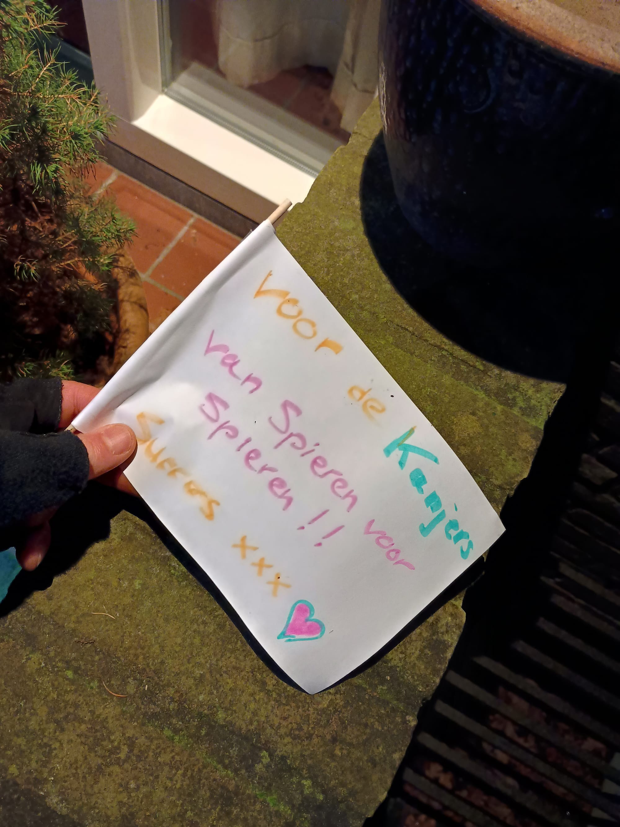 Wat niemand aan zag komen, was hoe intens mensen zouden meeleven met die bezorgtocht. Mede dankzij die live-trackinglink! Men ons online volgen, en dat gebeurde. De hele dag door. We kregen via allerlei kanalen berichtjes maar ook bemoedigende woorden bij de voordeur of via briefjes aan de brievenbus. Wildvreemden hielpen ons onderweg met een fietspomp toen we een lekke band hadden. Er zijn mensen extra vroeg opgestaan of juist langer wakker gebleven om ons even te kunnen zien en aan te moedigen.